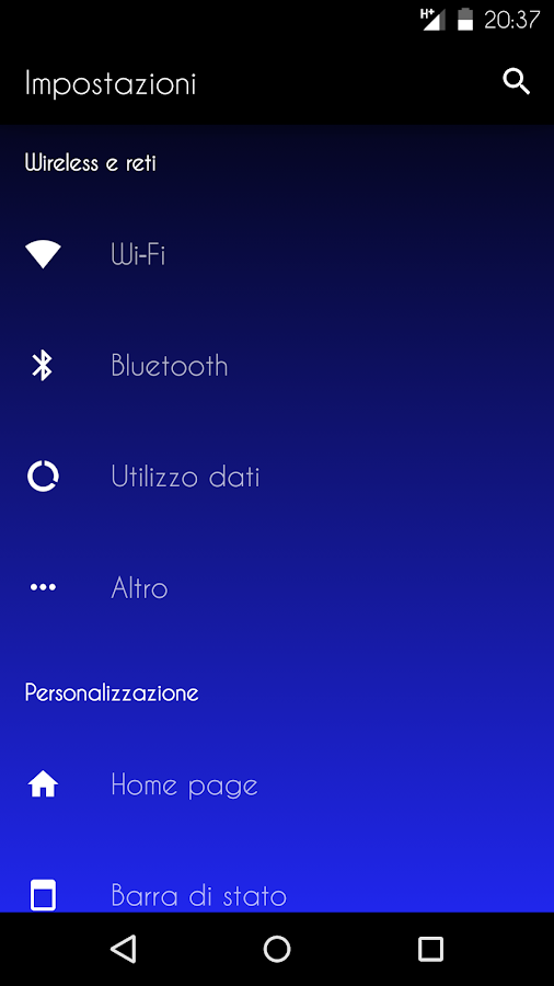 -la mayoría de aplicaciones del sistema tienen sombra azul y negro o fondo negro con azul barra de estado, barra de acción y acentos